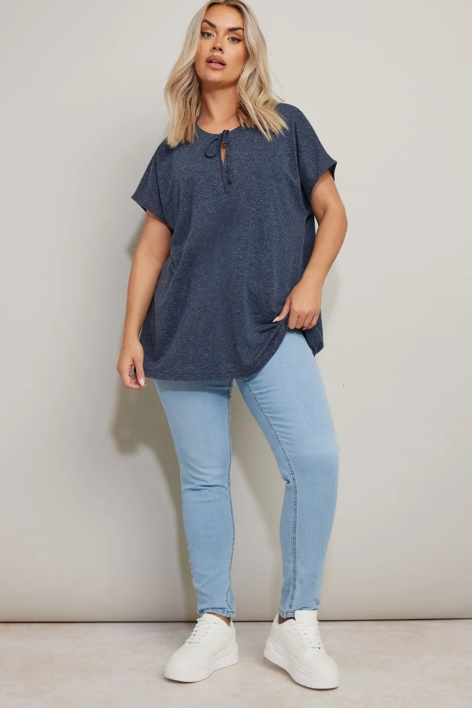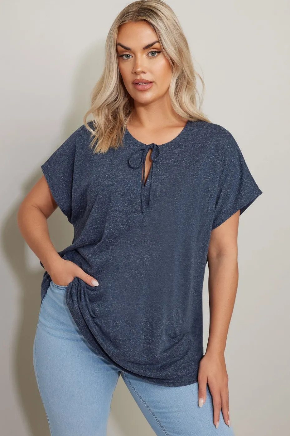 Be the first to review “Yours Curve Navy Blue Linen Marl Tie Front Top” Cancel reply