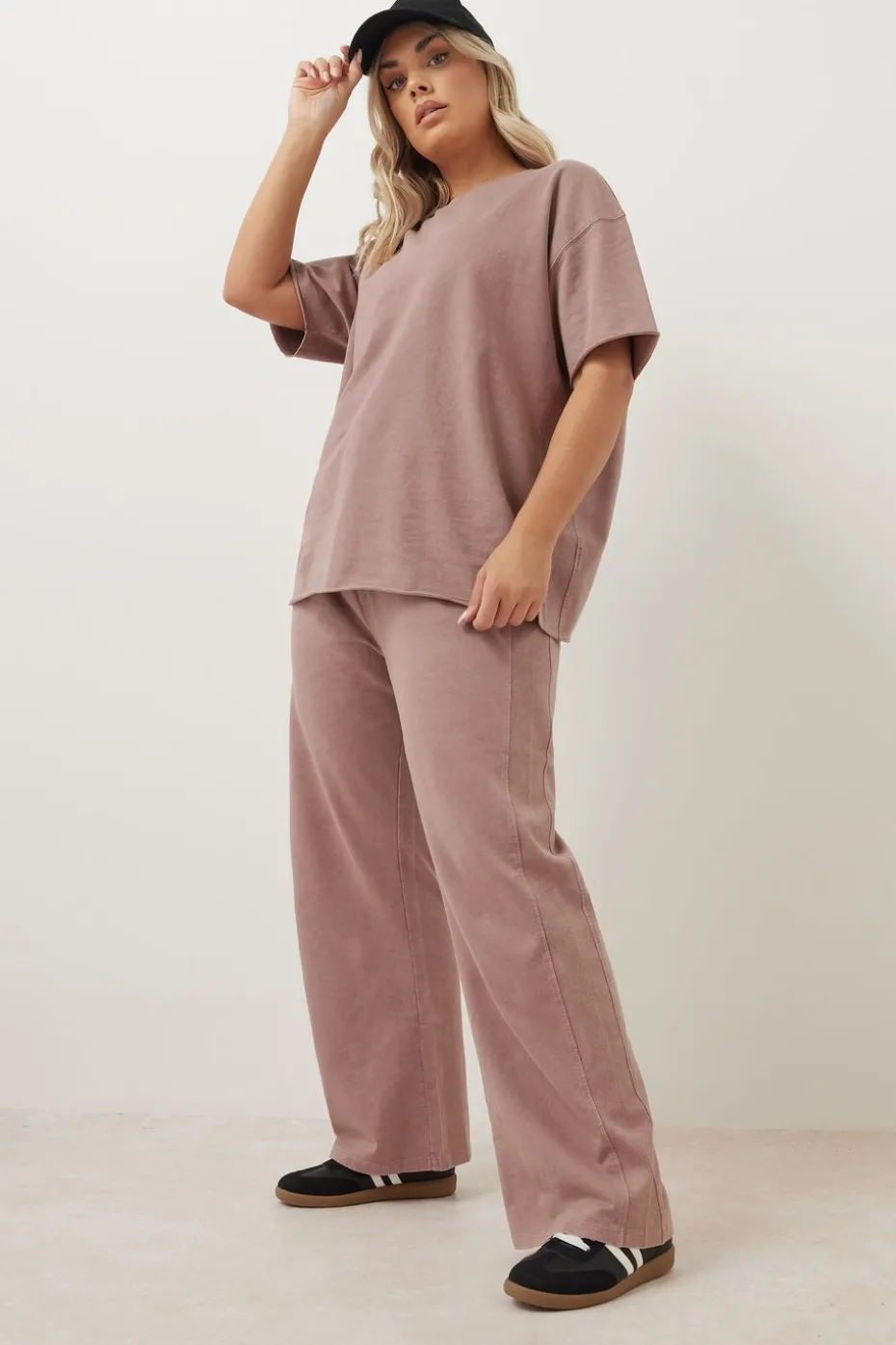 Give your everyday wardrobe a refresh with these must-have wide leg joggers Made from a soft cotton fabric, they feature an acid wash design, an elasticated waistband, and an adjustable tie drawstring. Simply style with the matching t-shirt for a co-ord you’ll be living in this season Model is 5′ 9.5″ / 176.53 cm and size UK 16/EU 44.
