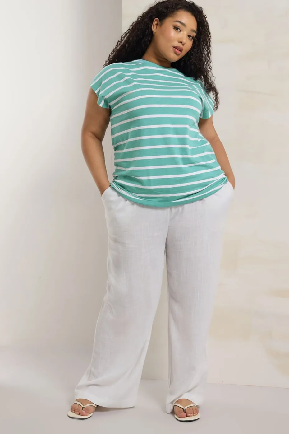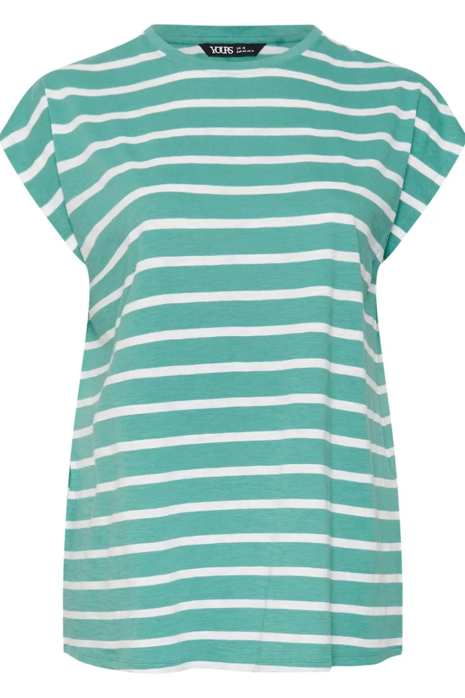 Stock up on the essentials with this striped t-shirt. Made from a soft cotton slub fabric, it features short grown on sleeves and a crew neckline. Perfect to rotate with denim shorts and sandals for an easy everyday look Model is 5’8″/175 cm and size UK 18/EU 46.