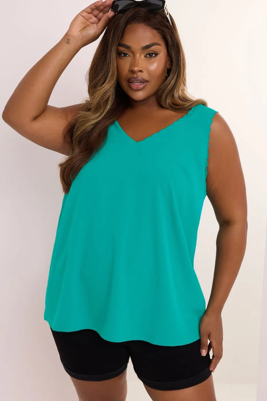 Yours Curve Teal Green Scallop Edge Cami Vest Top