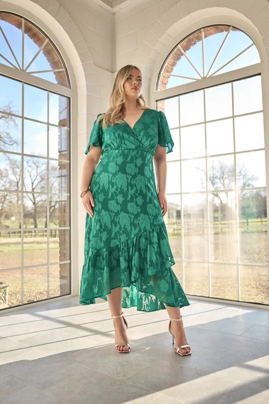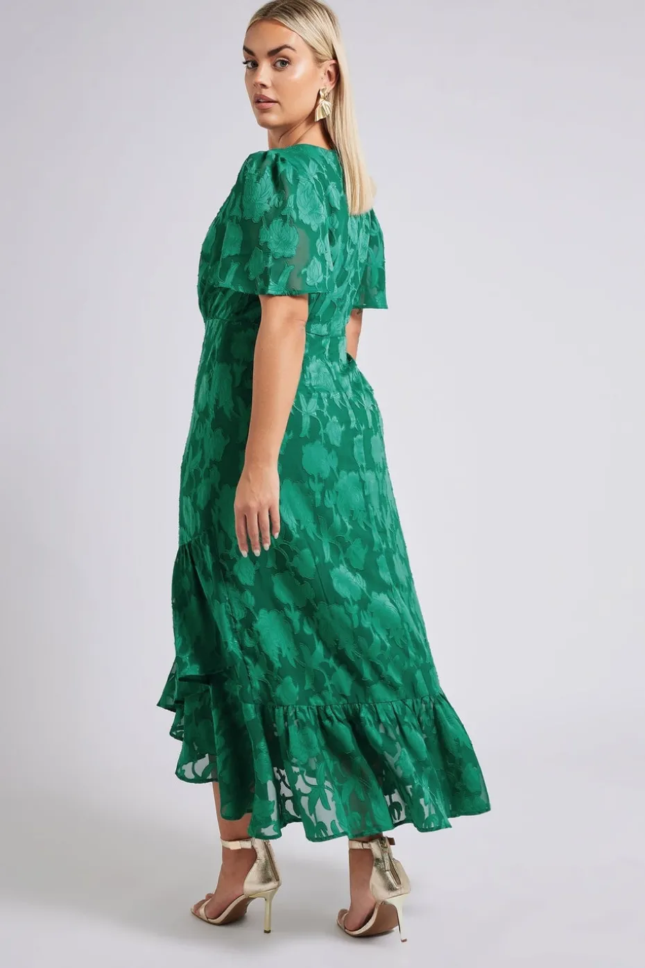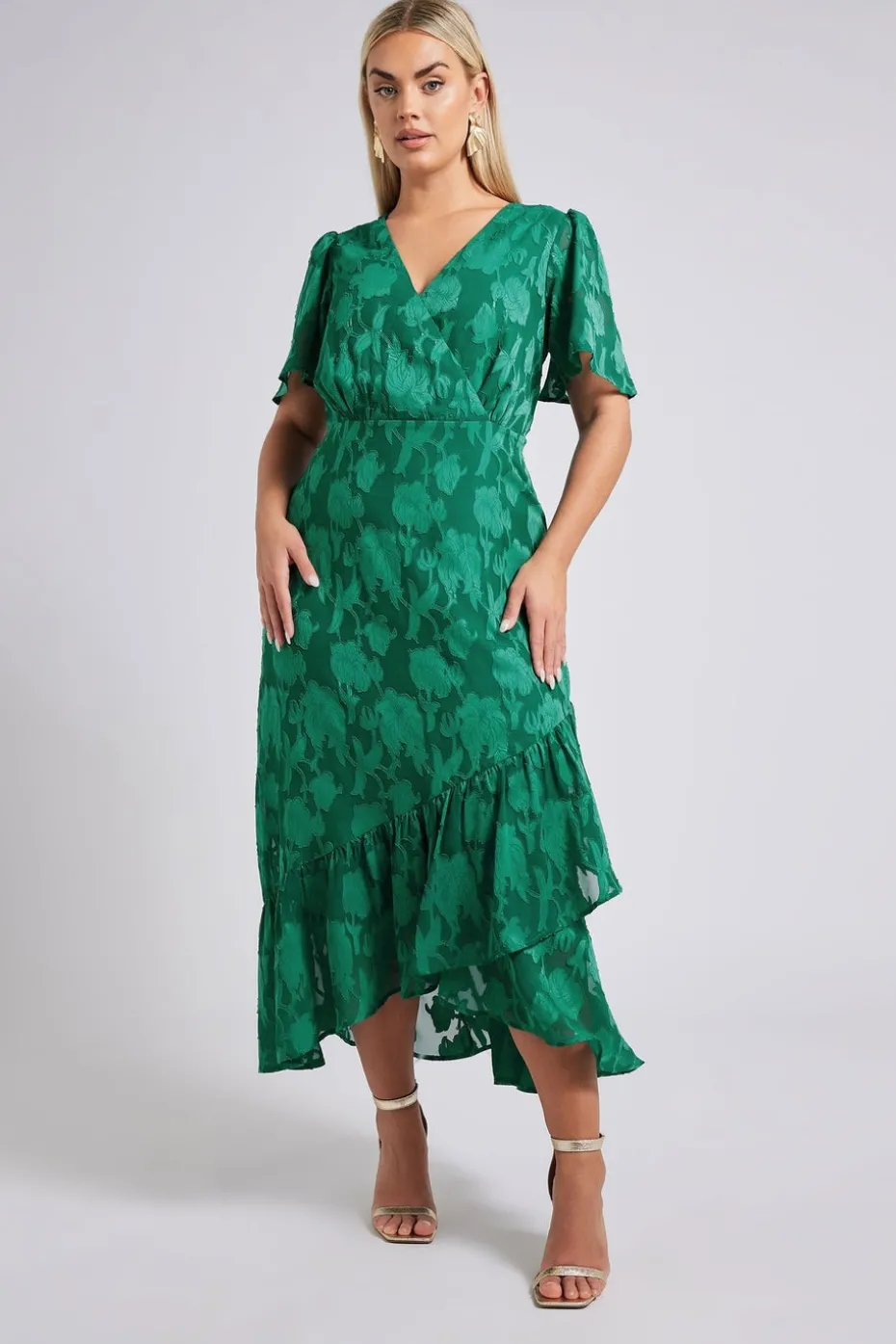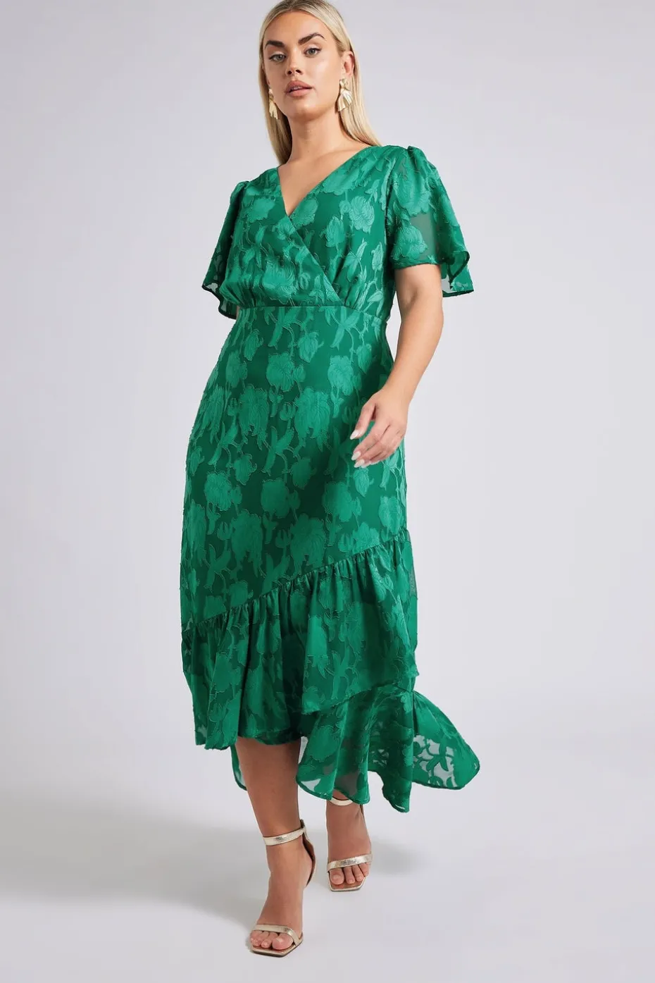 Be the first to review “Yours London Curve Green Jacquard Floral Wrap Ruffle Hem Dress” Cancel reply