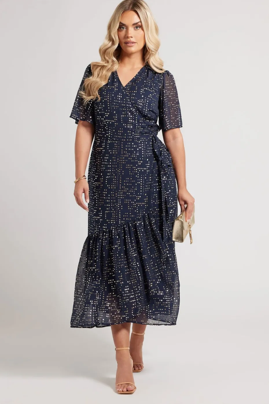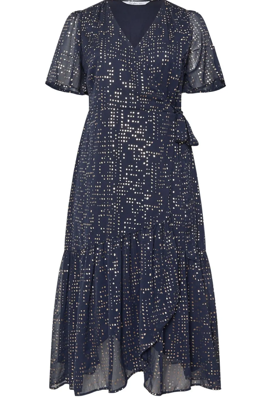 Be the first to review “Yours London Curve Navy Blue Metallic Dot Wrap Dress” Cancel reply