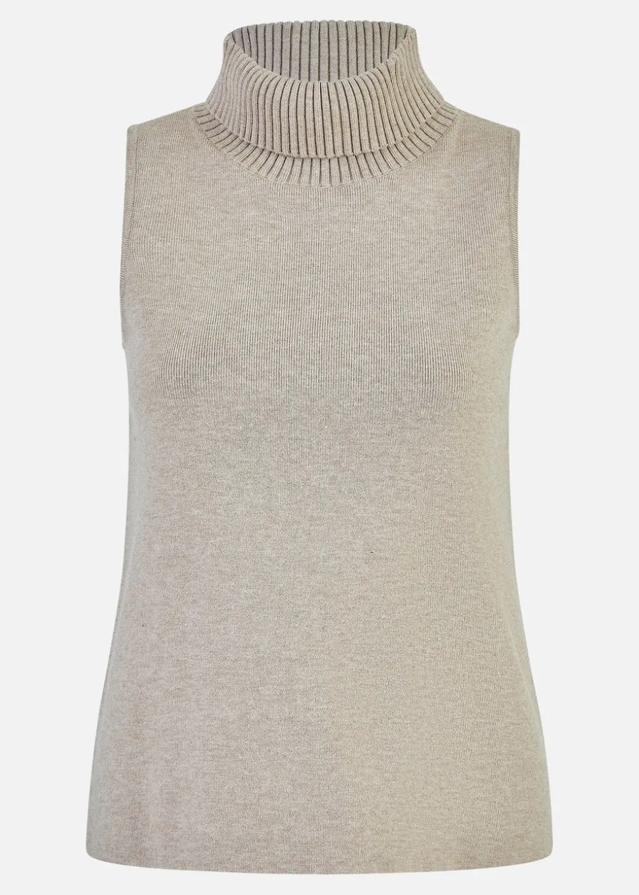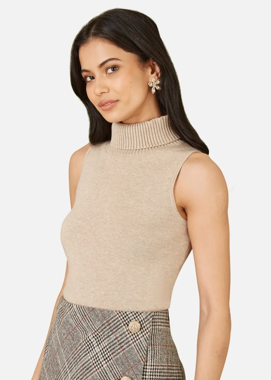 Be the first to review “Yumi Beige Knitted Roll Neck Sleeveless Jumper” Cancel reply