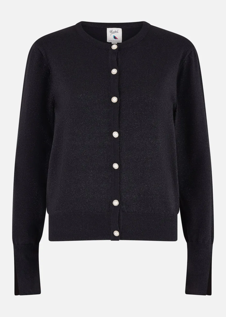 Be the first to review “Yumi Black Metallic Knit Cardigan With Pearl Button Details” Cancel reply