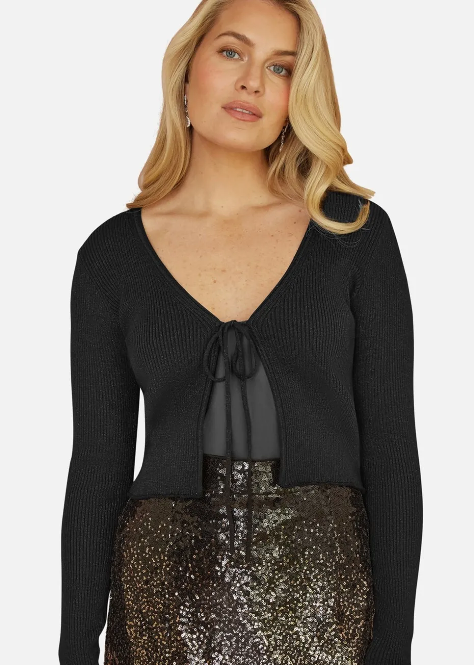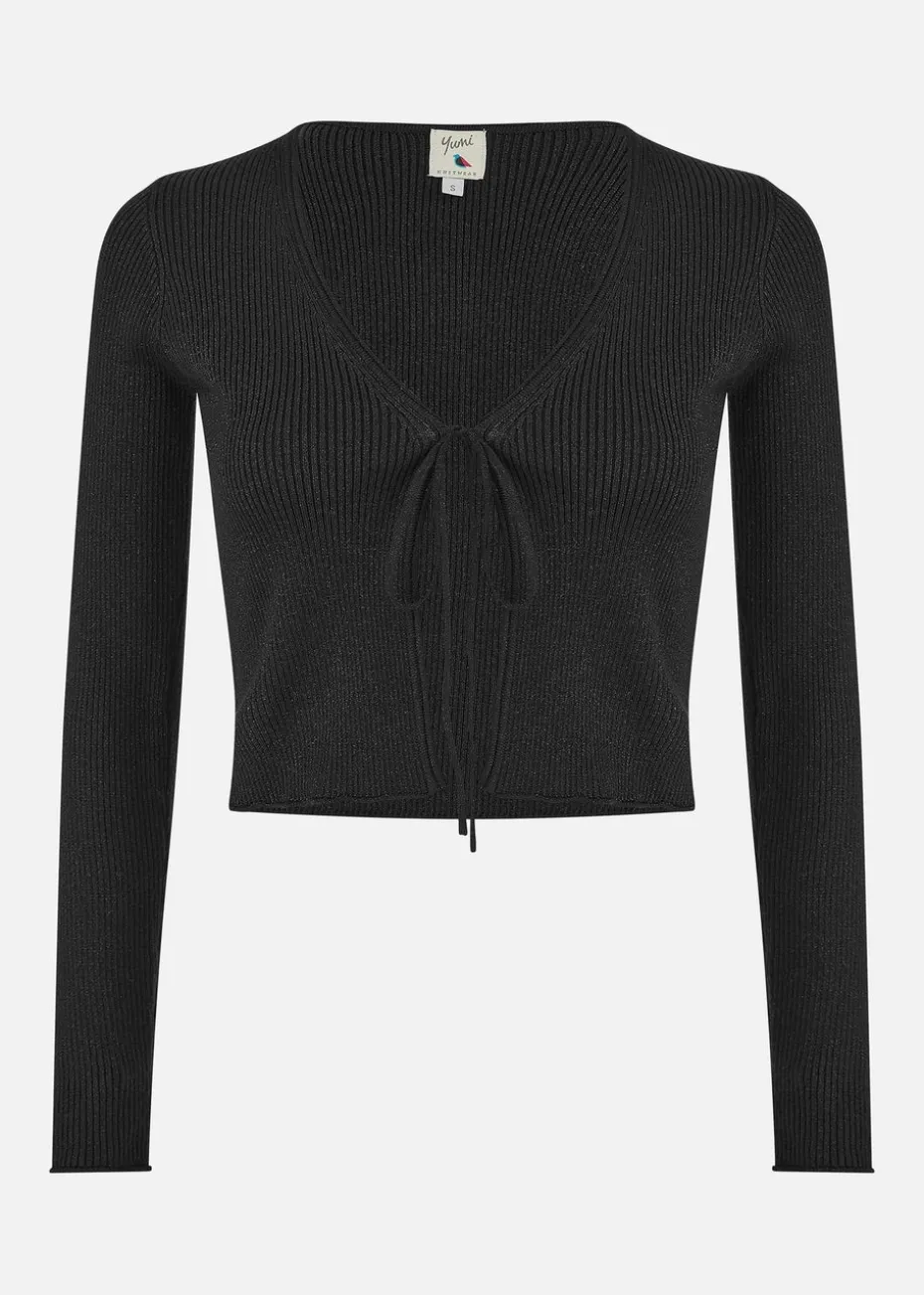 Be the first to review “Yumi Black Metallic Knitted Ribbed Tie Front Bolero” Cancel reply