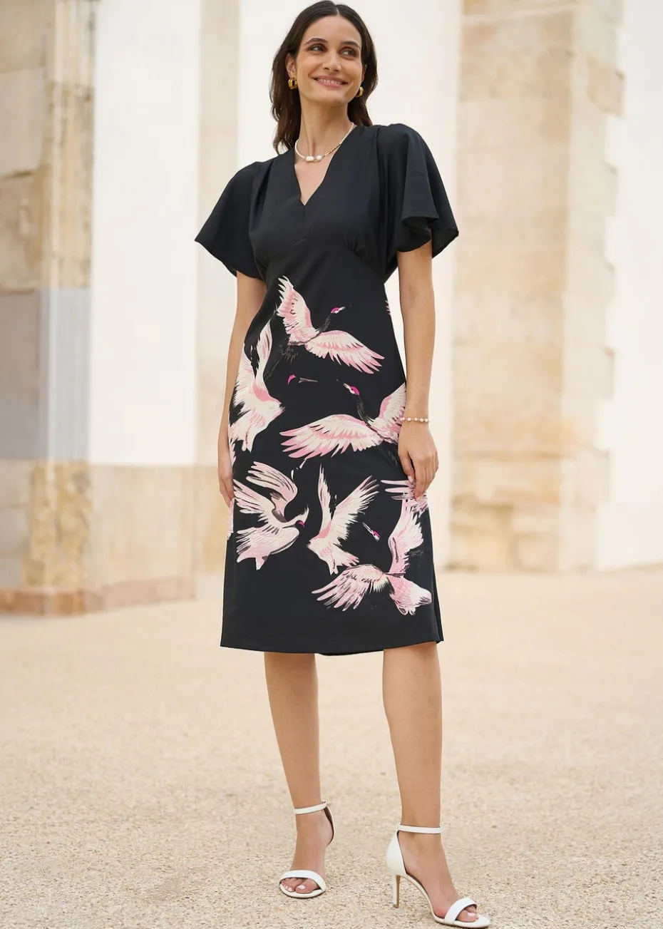 What could be better than a new take on a classic shape? One with a decadent Crane print, lovingly designed in house. The supersoft lightweight recycled fabric of this midi dress drapes over the knee in a relaxed shape, balanced by flared sleeves and a pretty V-neckline. Don’t be surprised if you turn heads.