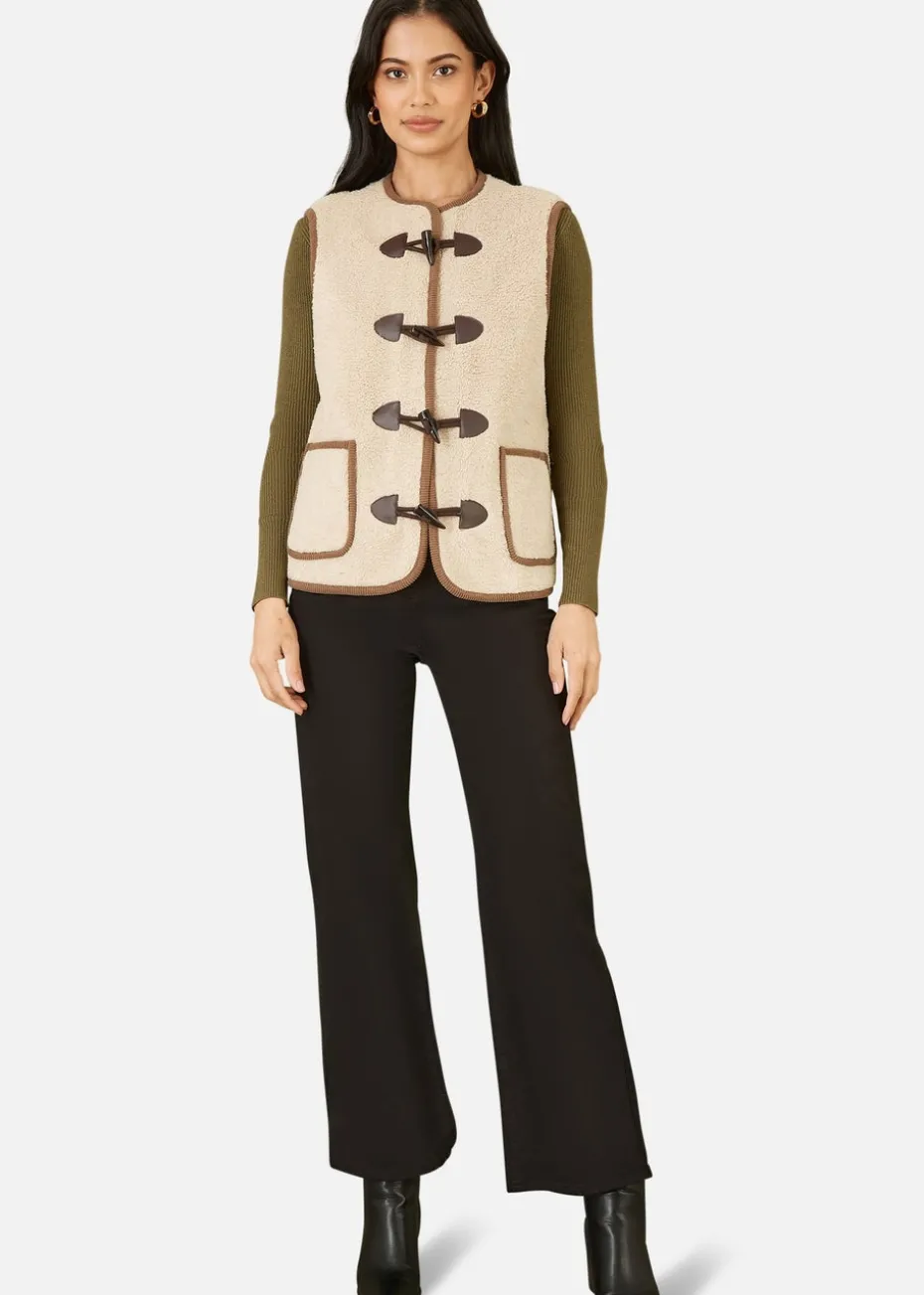 Yumi Cream Borg Gilet With Faux Leather Button Details