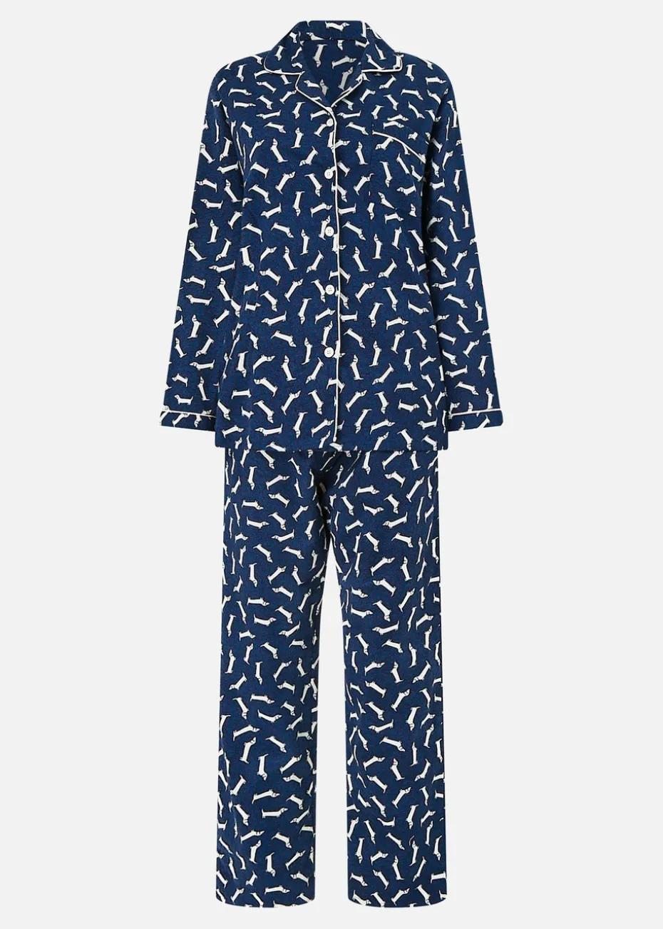 Yumi Navy Dachshund Brushed Cotton Pyjamas