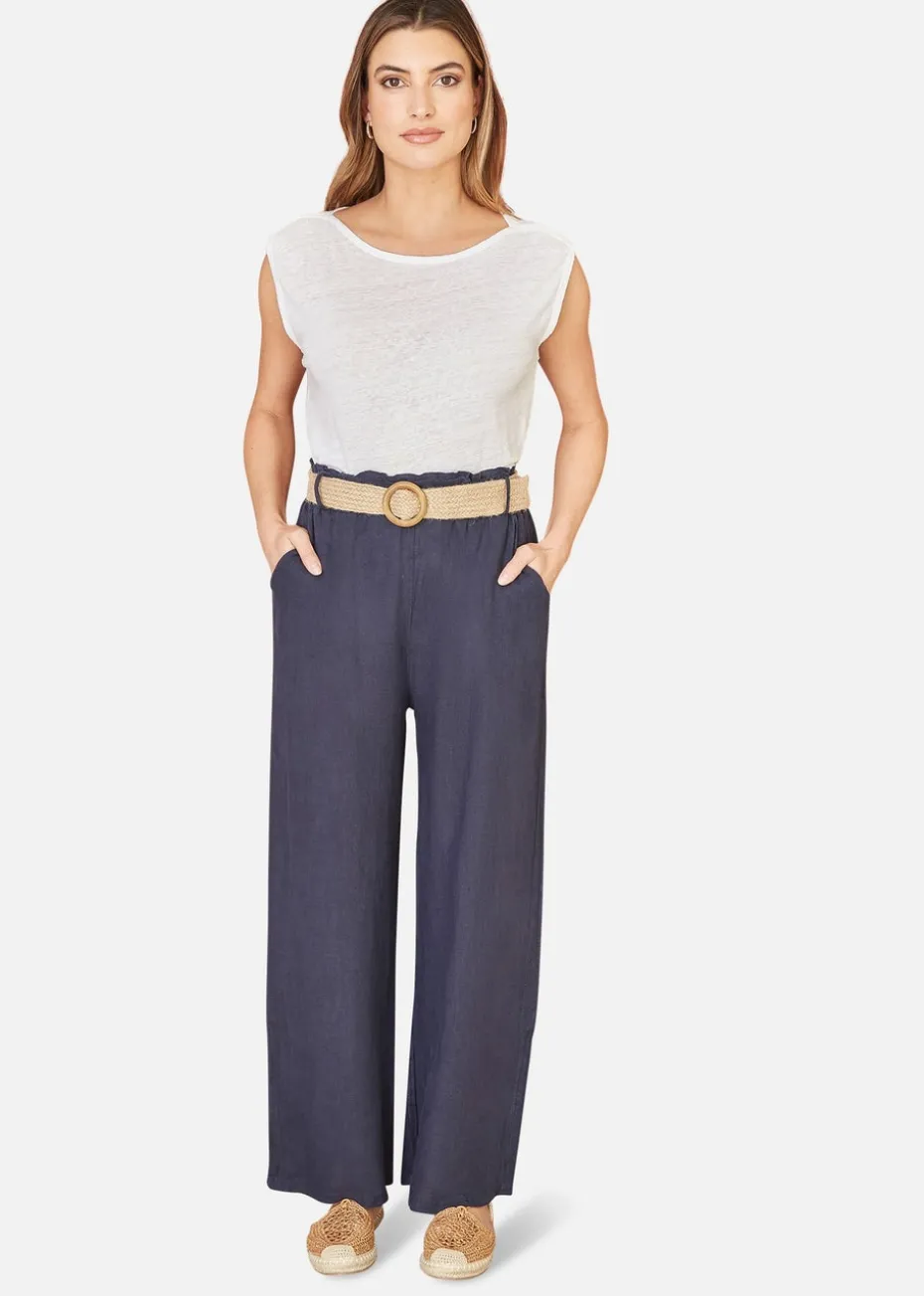 Be the first to review “Yumi Navy Italian Linen Wide Leg Trousers With Belt” Cancel reply