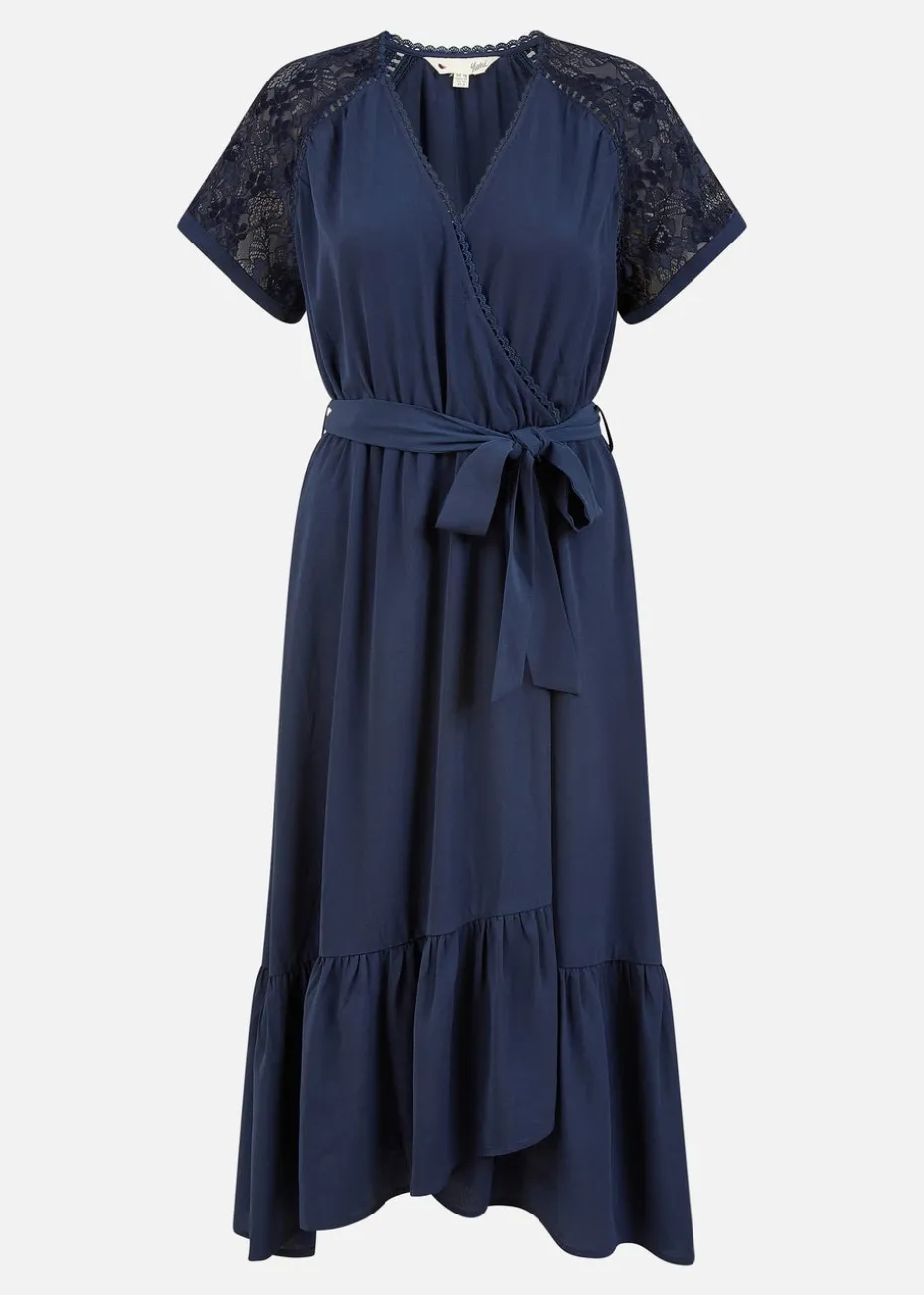 Be the first to review “Yumi Navy Lace Sleeve Midi Wrap Over Dress” Cancel reply