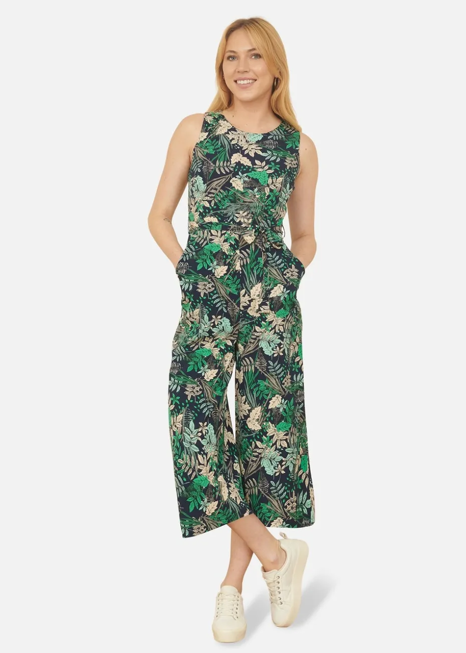 Yumi Navy Leaf Culotte Jumpsuit