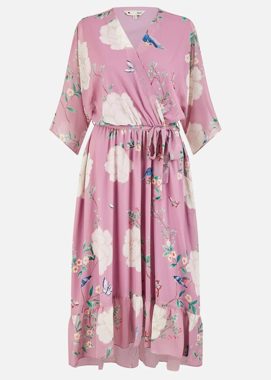 Be the first to review “Yumi Pink Bird & Floral Print Midi Wrap Dress” Cancel reply