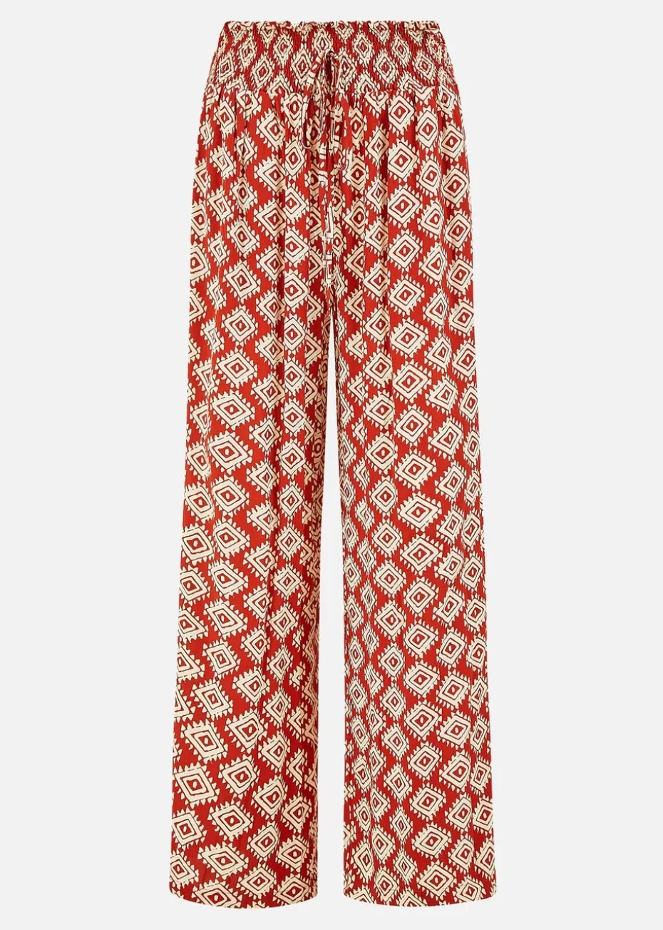 All over prints are big news this season adding them to your wardrobe is an sure fire way to be bang on trend. We love these trousers with geo print, in a relaxed fit that shouts out to Summer dressing, wear with trainers or sandals and a plain top. The lightweight airy fabric is great for everyday dressing, with a comfortable ruched waistline, and pockets.