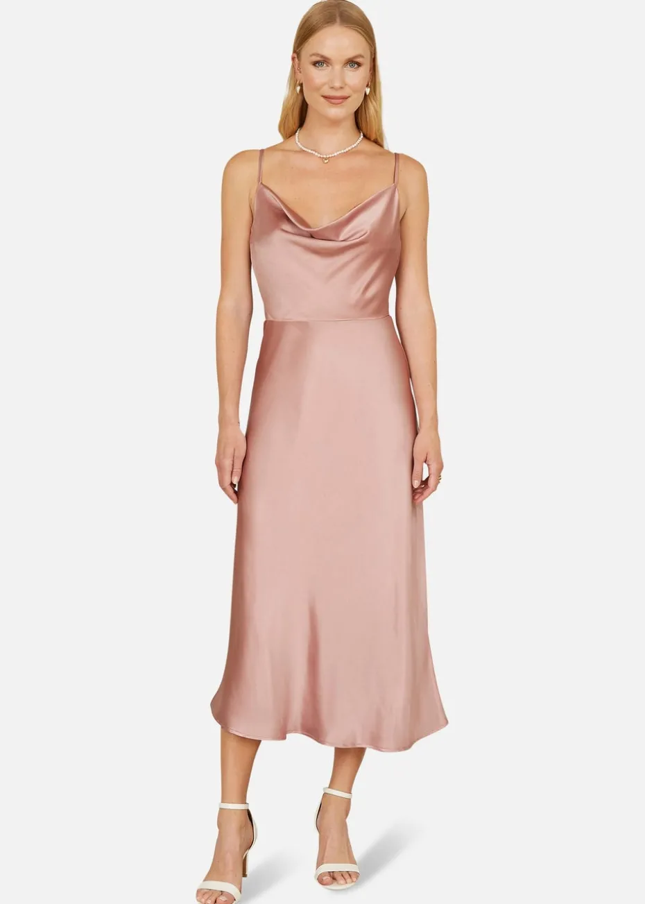 Be the first to review “Yumi Rose Pink Satin Cowl Neck Midi Dress” Cancel reply