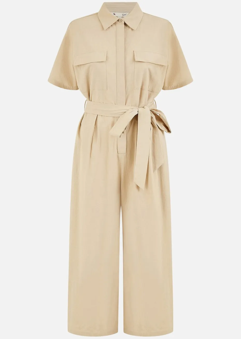 This practically perfect fit from Yumi will have you sorted for any situation. Work or weekend this utility style jumpsuit has a lot going for it. A sleek yet relaxed design, with a tie at the waist, tailored sleeves, button down fastening and pockets on the front. Wear with trainers for a cool fit.