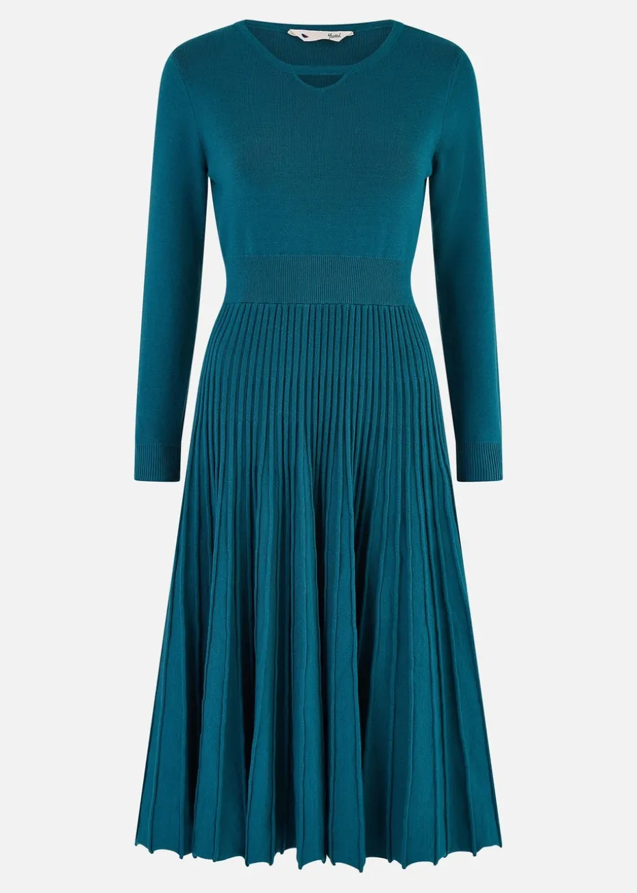 Be the first to review “Yumi Teal Knitted Pleated Skater Dress With Notch Neckline” Cancel reply