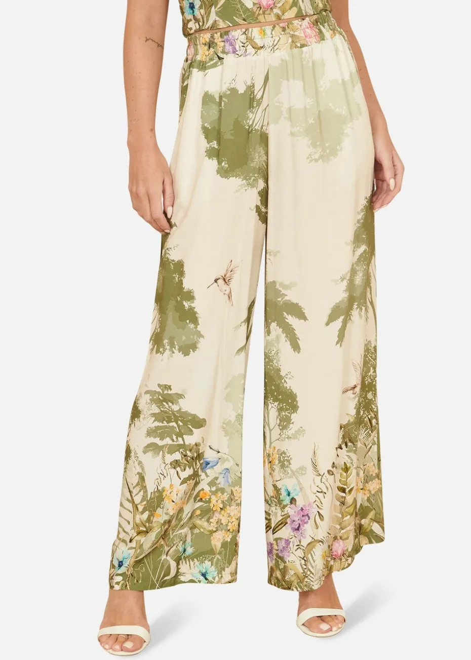 In a chic Wide Leg Trousers design that boasts a pretty and feminine palm print. Made from a lightweight fabric for summertime. With matching top available to complete the Co-Ord look.