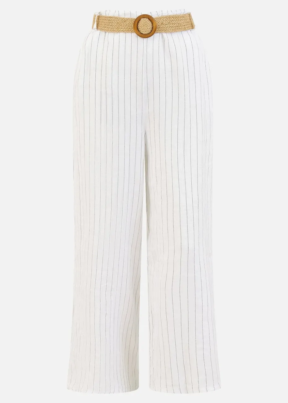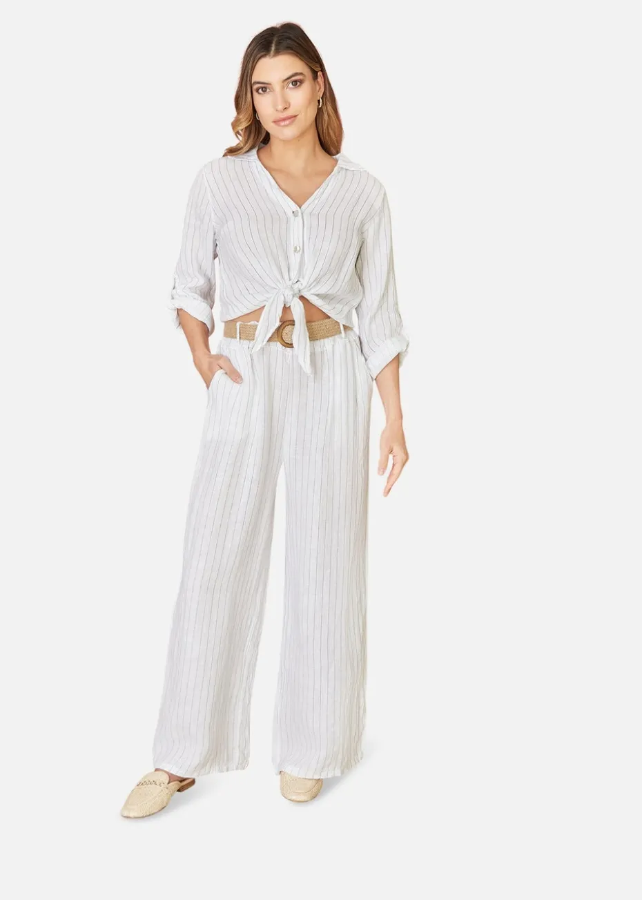 Be the first to review “Yumi White Striped Italian Linen Wide Leg Trousers With Belt” Cancel reply